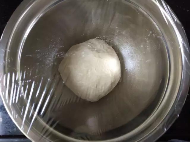 2. 把揉好的面团放在容器里,盖上保鲜膜,放在温暖的地方发酵,大约50到60分钟。现在天气比较热,我就放室温发酵,时间大约为50分钟。