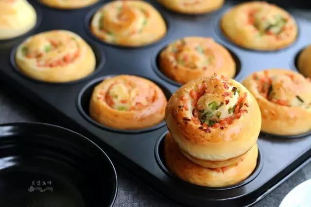 烘焙配方 | 超详细开酥步骤健康又美味的香葱火腿面包卷