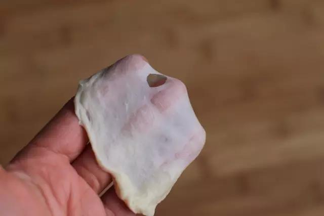 ③ 揉至完全阶段。(取一小块面团用手指撑开有坚韧的不易破薄膜即可)
