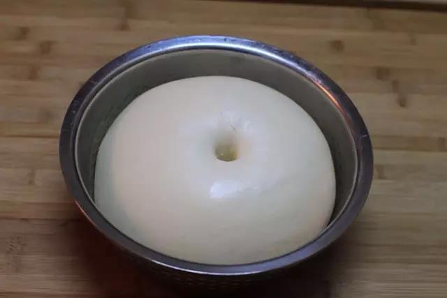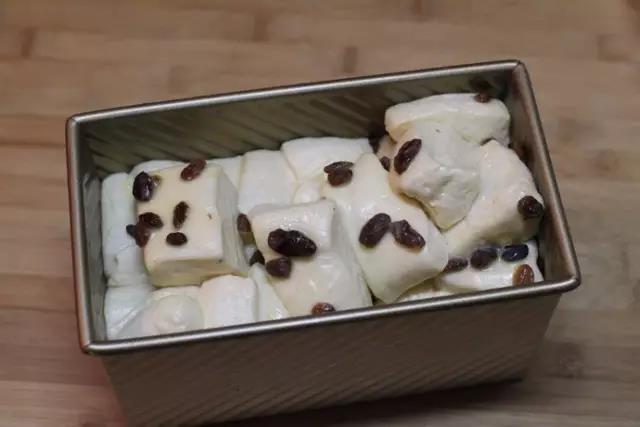 ⑮ 发至模具的八分高,轻触面团有少许弹性。